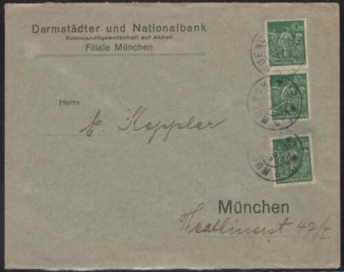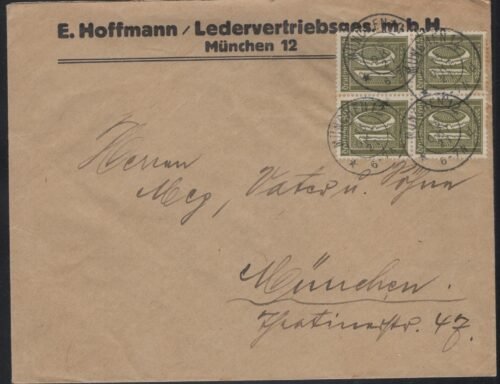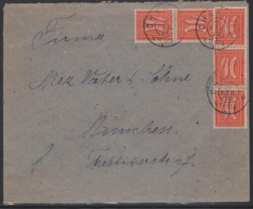 Deutsches Reich MI 159(4) cover Munchen 16 Okt 24 VF