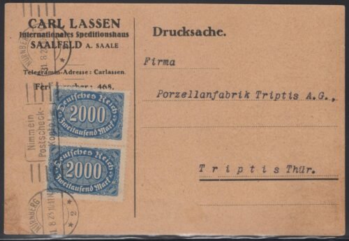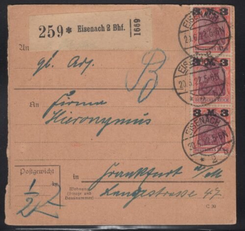 Deutsches Reich MI155 (3) paket card Eisenbach 20 6 22F/VF