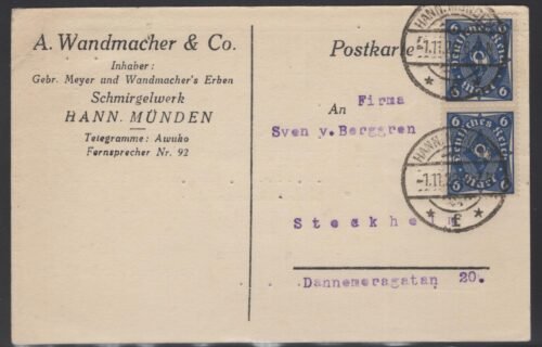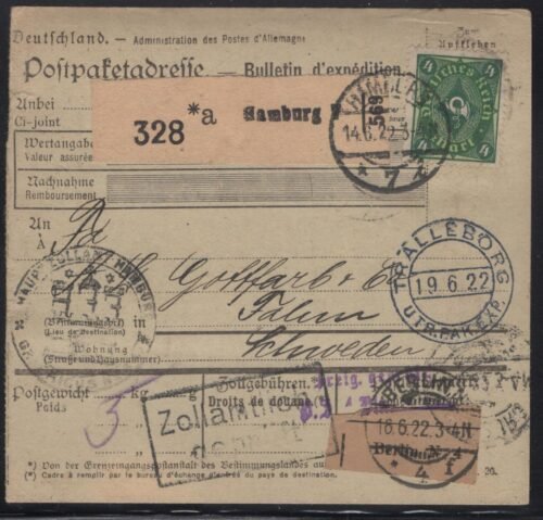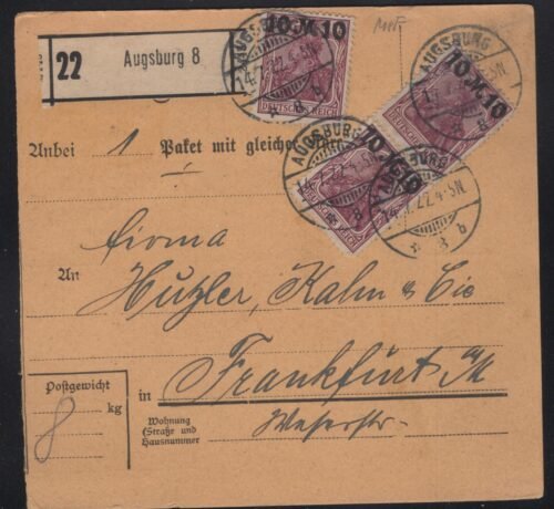 Deutsches Reich MI 157 type II packet card Augsberg 14 7 22 VF