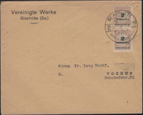 Deutsches Reich MI 326a COVER Glashutte 15 11 23 F/VF