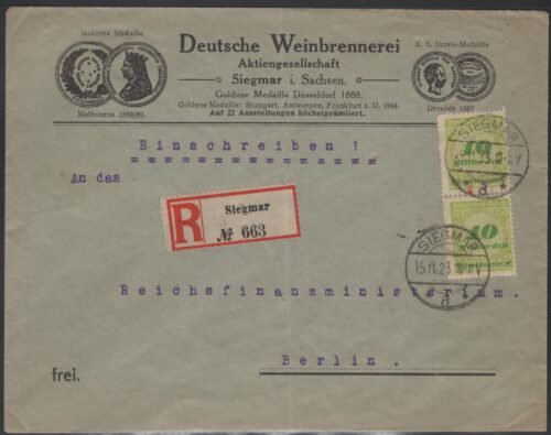 Deutsches Reich MI 327A, 326 (2) COVER F/VF Leipzig 20 11 23 expertized