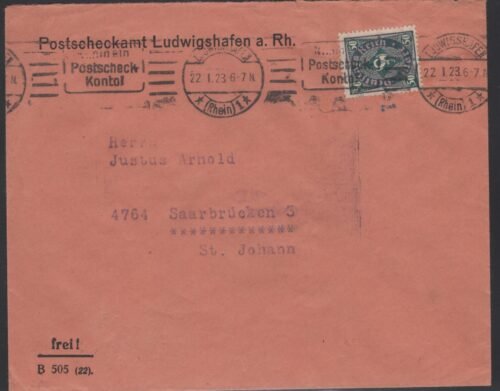 Deutsches Reich MI 209I cover Ludwigshafen 22 1 23 VF