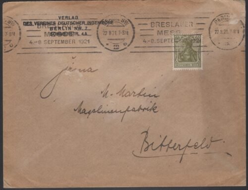 Deutsches Reich MI 147 cover Berlin 22 8 21 Machnie cancel F/VF