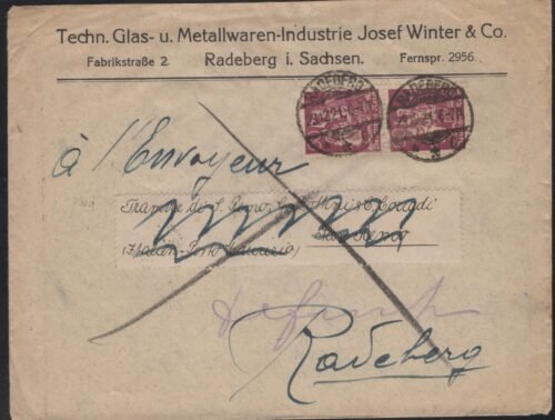 Deutsches Reich MI 208 (2) cover Radeburg 23 12 21 VF