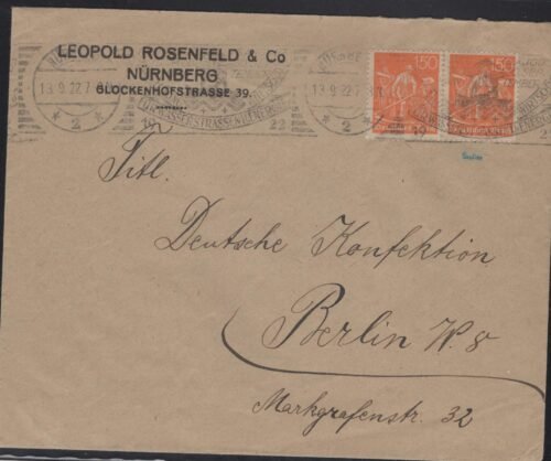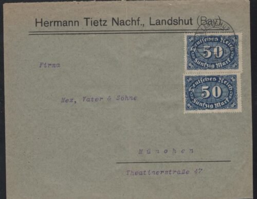Deutsches Reich MI 180 (2), 187 pc paying local rate for 1 july – 1 Oct 22 VF