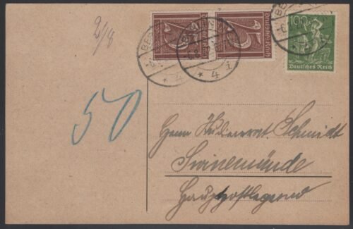 Germany Nachnahme card franked with Mi 229 – scarce thus! U VF