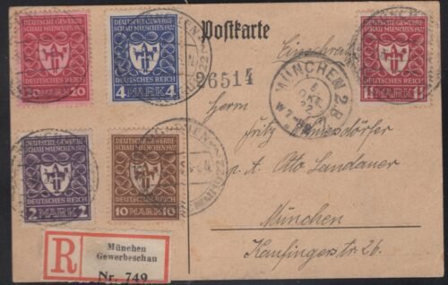 Deutsches Reich MI 199-200, 202-4 Reg pc Munchen 6 Okt 22 VF