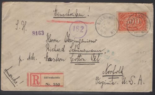 Deutsches Reich MI 195, 196 (7), 193 paket card 14 6 23 VF