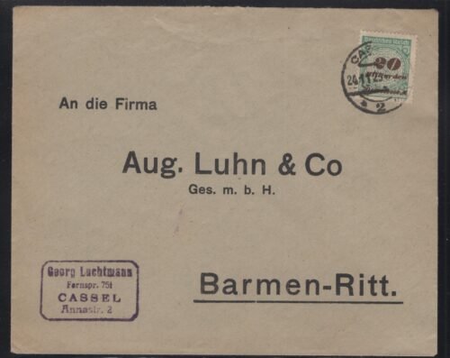 Deutsches Reich MI 327A COVER Cassel 24 11 23VF