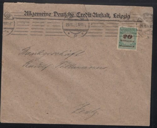 Deutsches Reich MI 329A COVERLeipzig 29 11 23 Machine cancel VF