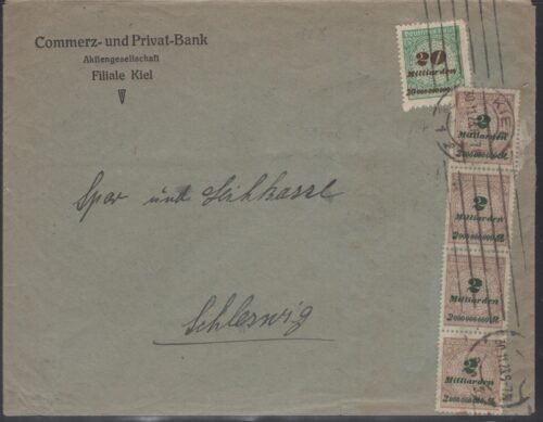 Deutsches Reich MI 326A(4) , 329B COVER Kiel 30 11 23 VF