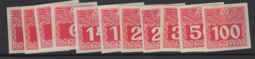 Austria Scott#: J34-44 var Michel#: P34zU-P44zU * no gum F/VF