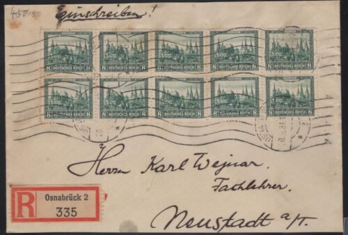 Deutsches Reich MI 450 (10) REG COVER OSNABRUCK F/VF