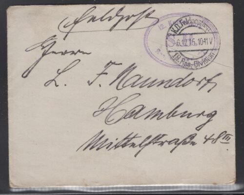 WWI Feldpost cover with Machine cancel Hamburg 12 10 14 VF