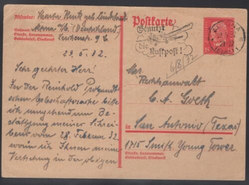 Germany Ganzsachen Michel#: P192, 460 air mail pc NURNBERG-FURTH FLUGHAFEN 30 3 32 VF