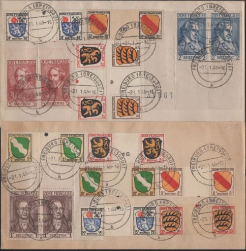 French zone MI 1ZW-10ZW, !!(2)-13(2) on UA covers Freiburg 21 1 48 VF