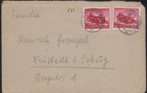 Third Reich Michel#: 868 with double use label affixed to previously mailed letter VF