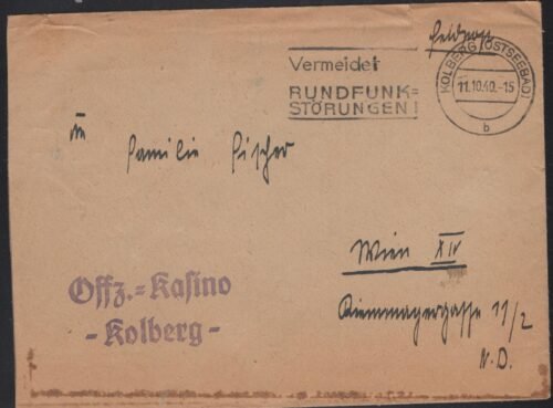 Feldpost cover VG/F Kolberg 11 10 42