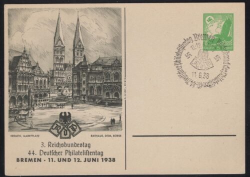 Germany Ganzsachen Third Reich Michel#: PP 142C private postcard philatelic show cachet Bremen 11 6 38 VF