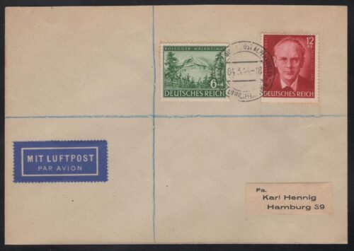 Deutsche Dientspost Alpenvorland Hennig cover franked with Ger 855-6 cancelled ULRICH 4.3.44 Vf