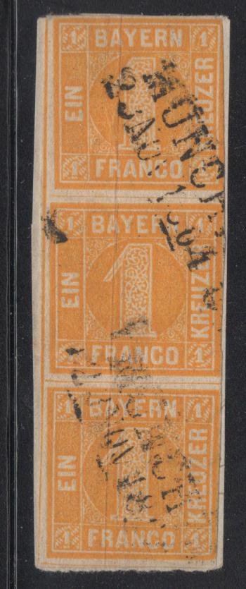 Bavaria Scott#: 9 Michel#: 8 vertical strip of 3 on small piece U F/VF