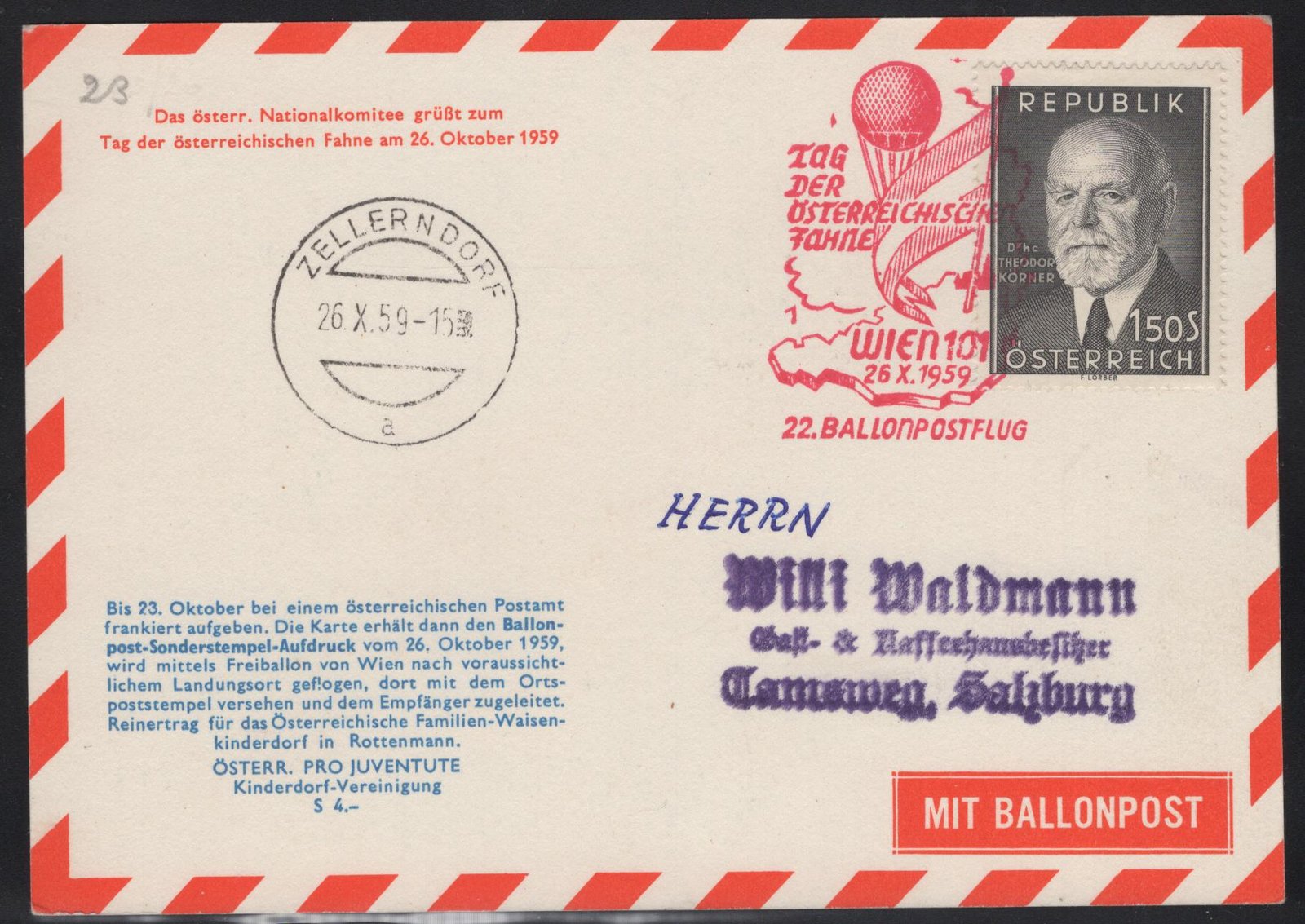 ANK Balloon Post 22a ppc WIEN 26 X 1959 F/VF