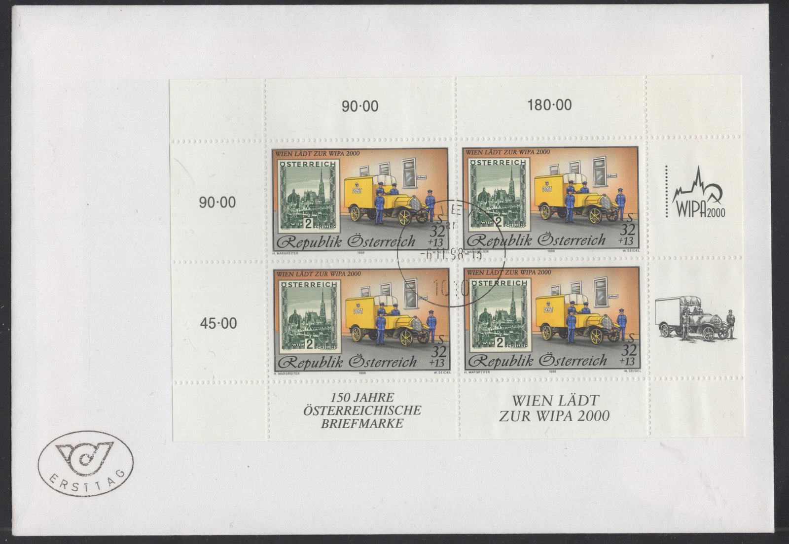 Austria MI 2300 kleinbogen unaddessed FDC VF