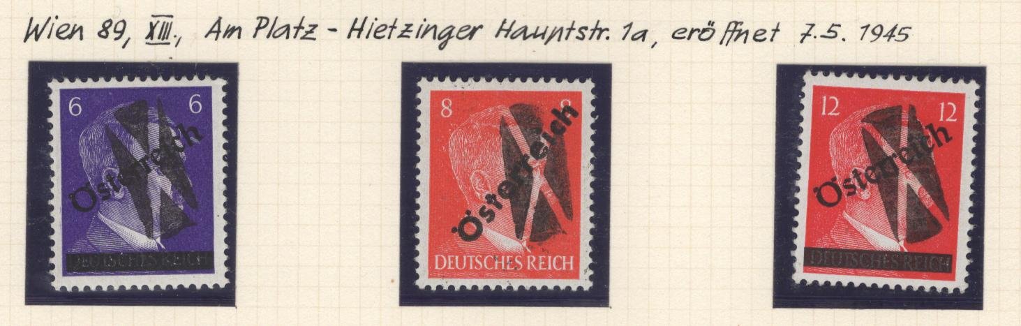 Austria: Scott#: 391-3 varieties Post WWII provisional issues Vienna locals Wien 89 XIII** NH VF
