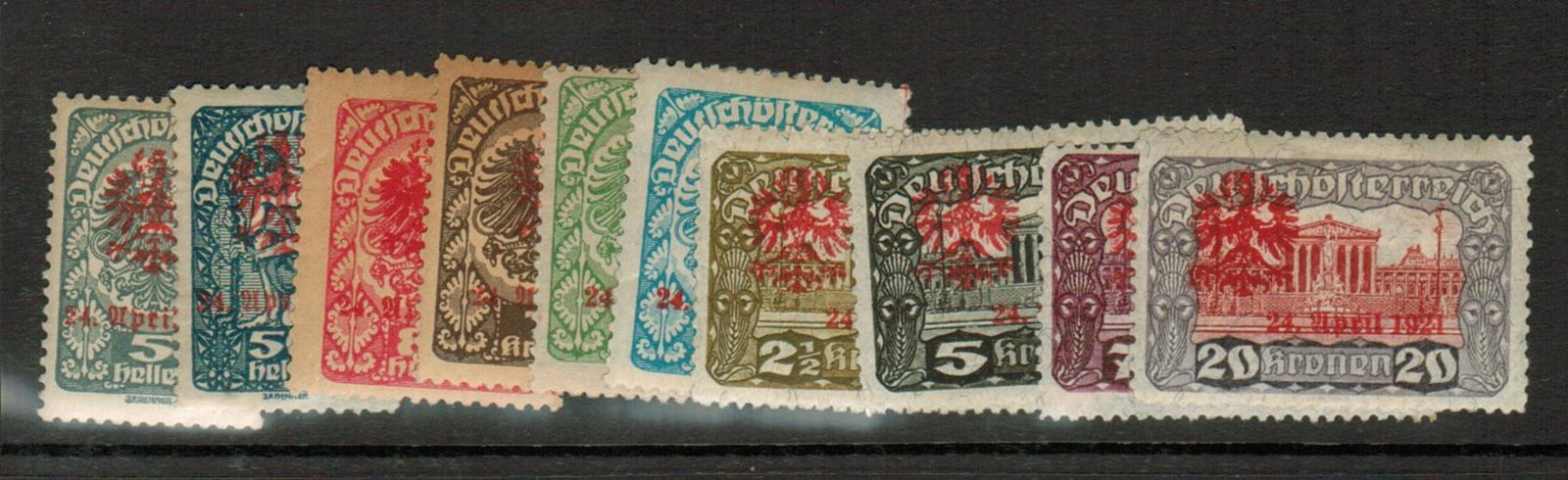 Austria WWI Locals Tirol 24 Apr 1921 Type II comlete set of 10 * HR F/VF