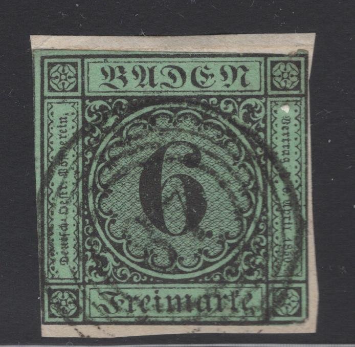 Baden Scott#: 3a Michel#: 3a U full frame Fine on piece