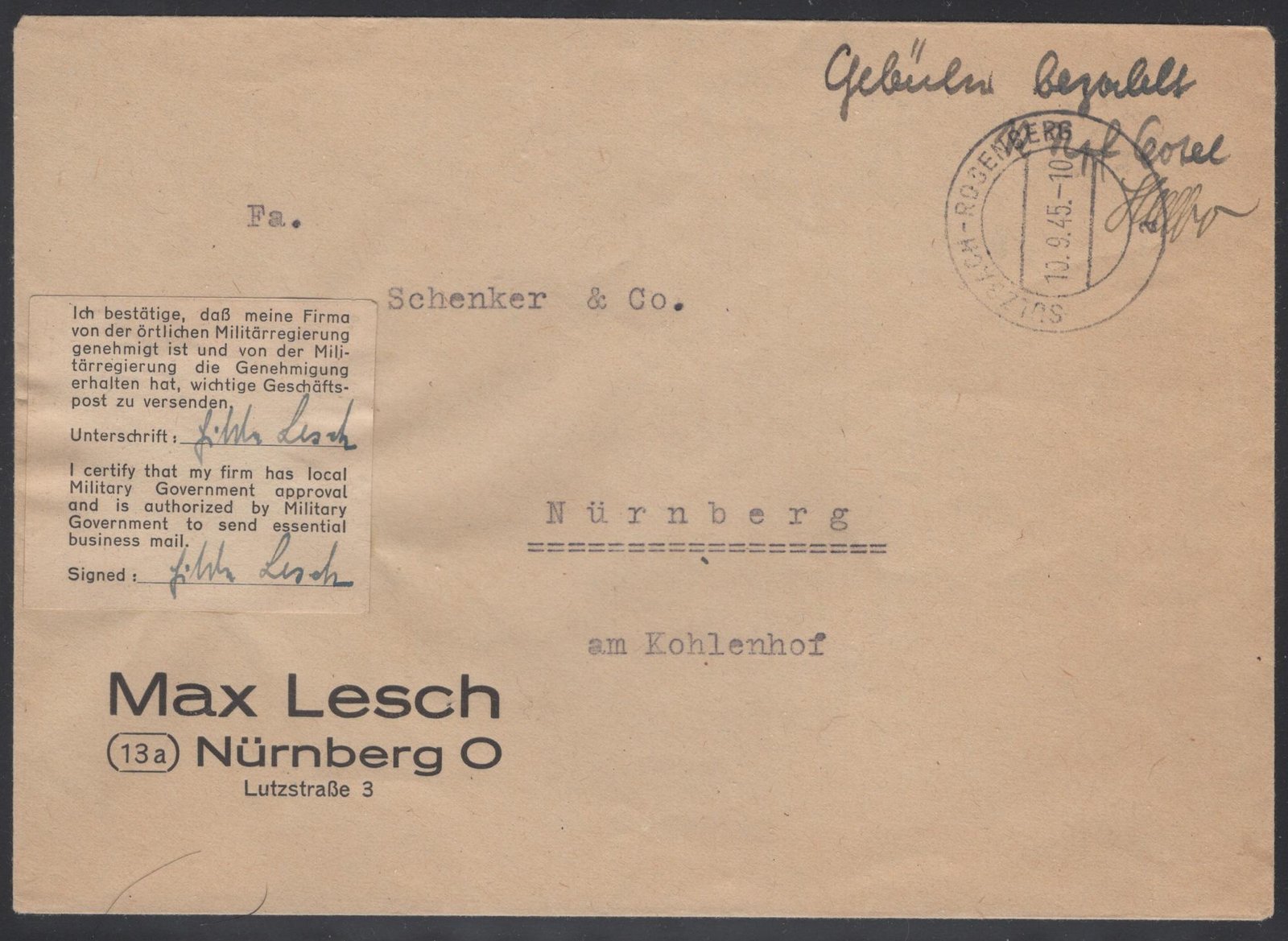 certified cover 10 9 45 gebuhr bezaht 3rd period VF quantity