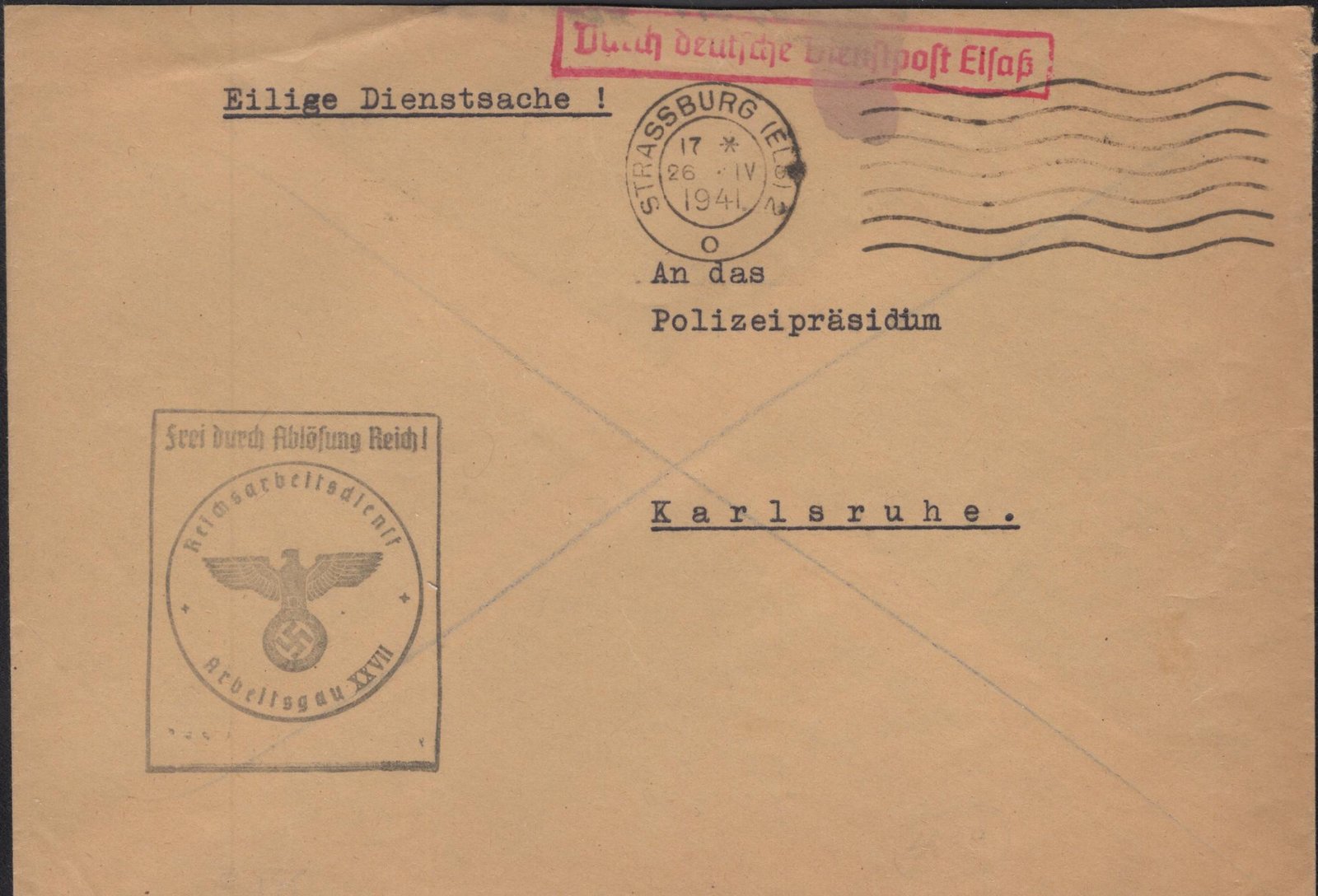Deutsche Dienstpost Bohmen/Mahren oversized official cover F/VF