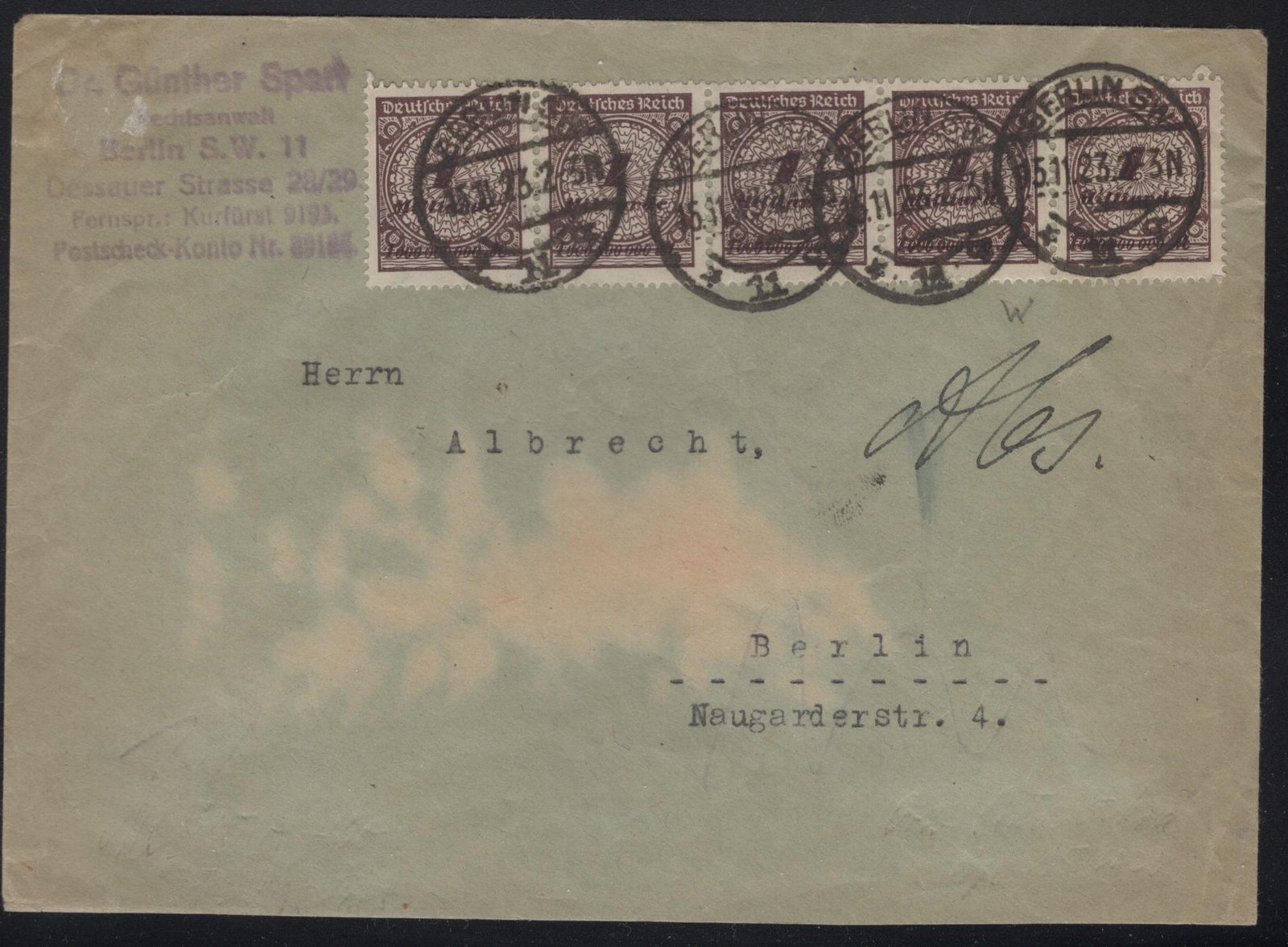 Deutsches Reich MI 325A(4) COVER Berlin 15 11 23 VF quantity