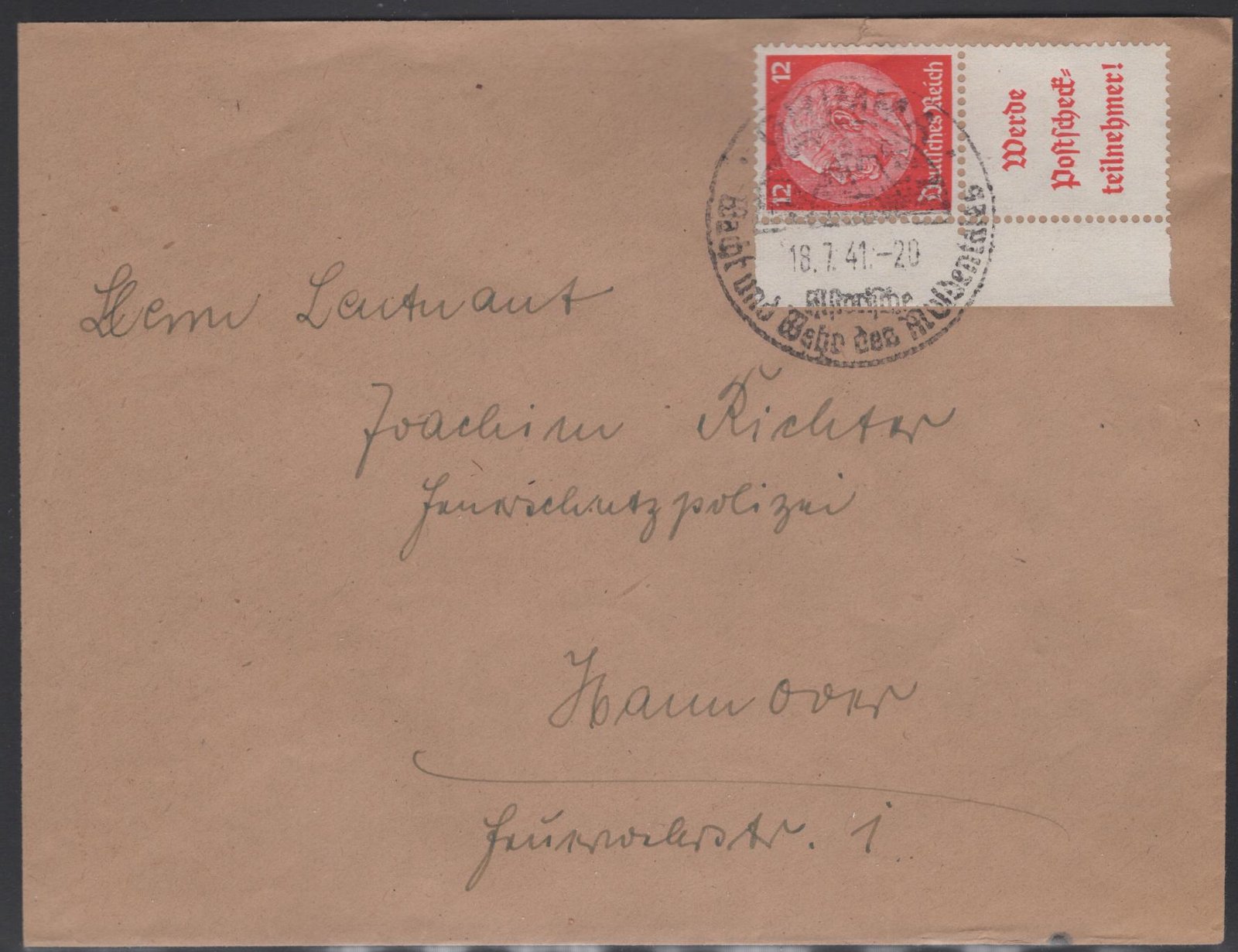 Deutsches Reich MI S197 small cover 18 7 41 F/VF