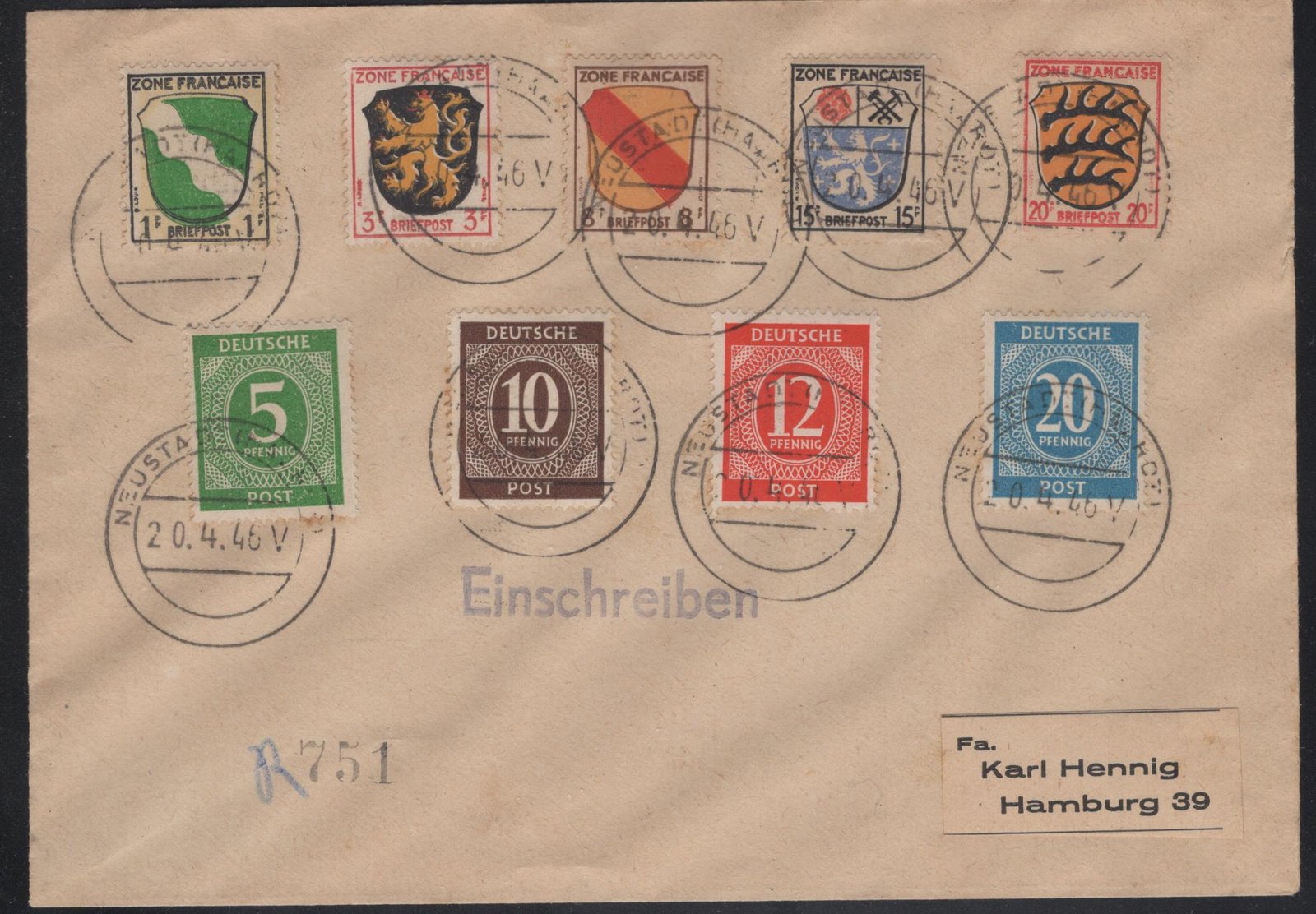 French zone MI 1,2,4,7,8 and Soviet Zone MI 915,18,19,24 mixed franking on philatelic cover VF quantity