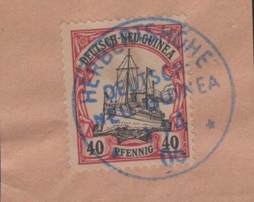 German New Guinea ARGE HERBERTSHOHE 2 BLUE CANCEL on MI 13 on piece VF quantity