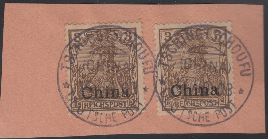 German Offices in China ARGE TSCHING7SCHOUFU 2 FR30 on Michel 15(2) VF on piece quantity