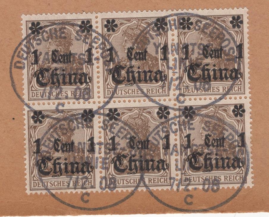 German Offices in China ARGE CANTON 1 FR 1 on BLOCK OF 4 Michel 38 VF on piece