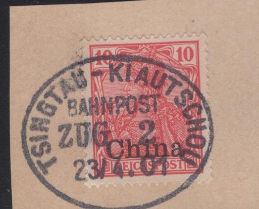 German Offices in China RAIL ROAD CANCEL TSINGTAU-KIAUTSCHAU ZUG 2 FR BP1 on MI 17 on piece VF quantity