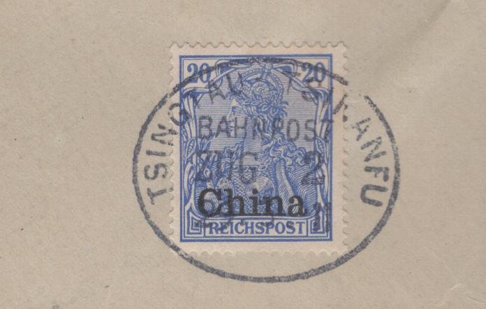 German Offices in China RAIL ROAD CANCEL TSINGTAU-TSINANFU ZUG 2 FR BP 4 on MI 18 ON PIECE VF quantity