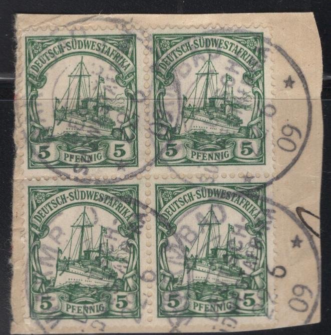 German South West Africa Scott#: 27 BLOCK OF ON PIECE FR158 cancel WARMBAD F/VF quantity