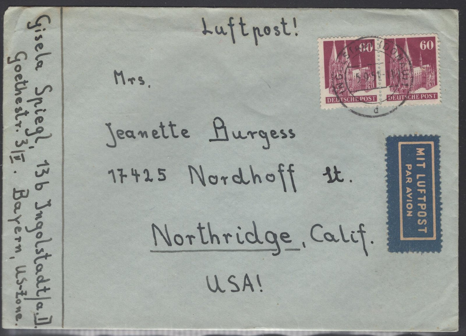Germany allied Zone Michel 96(2) air mail cover to US 5 9 50 VF quantity