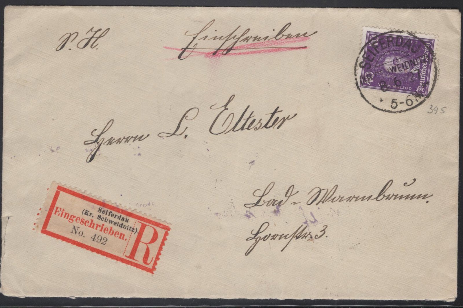 Germany Cover Michel#: 395 Reg cover 8 6 27 VF quantity