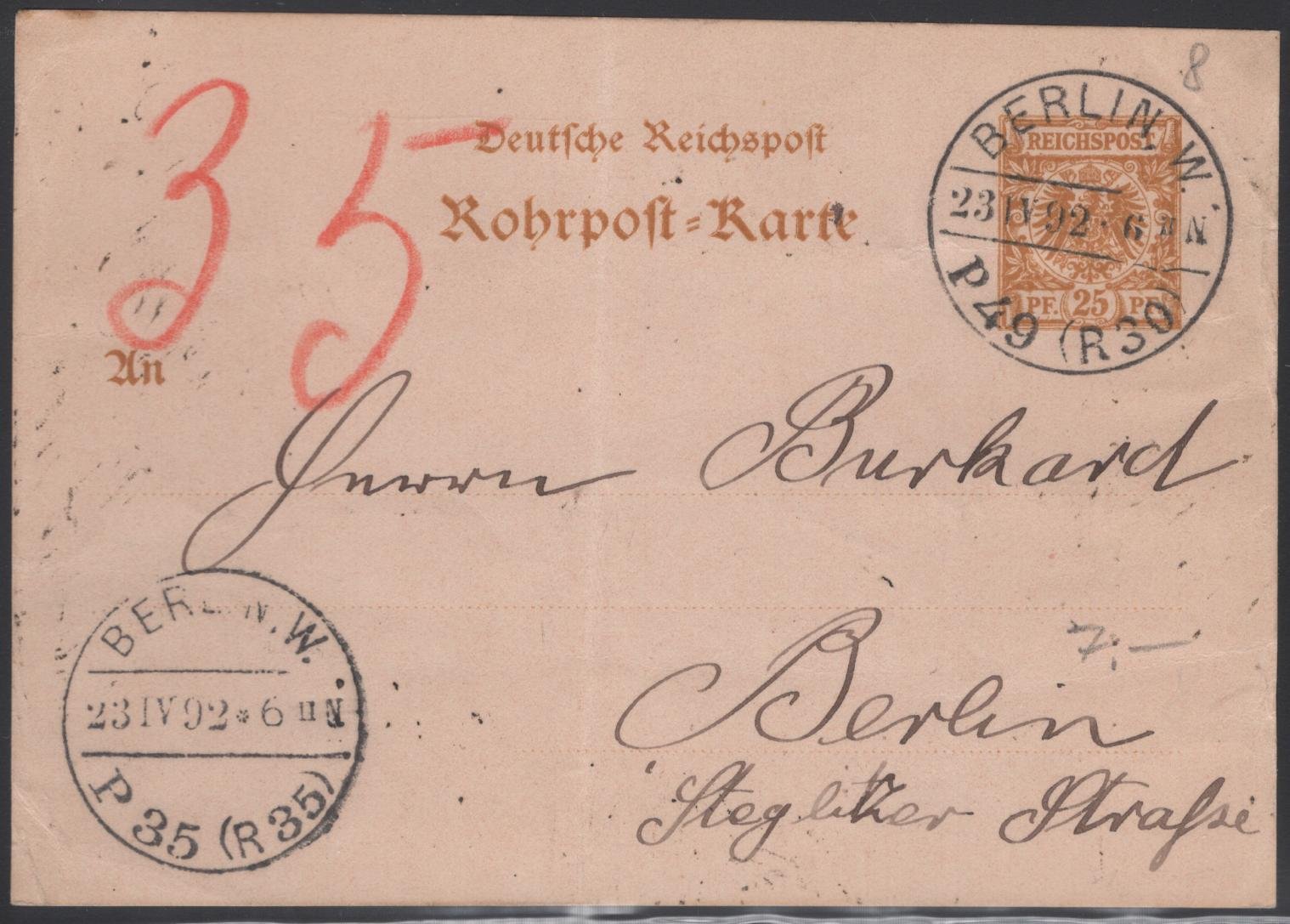 Germany Ganzsachen Michel#: RP8 folded pc Berlin 23 IV 02 F/VF quantity