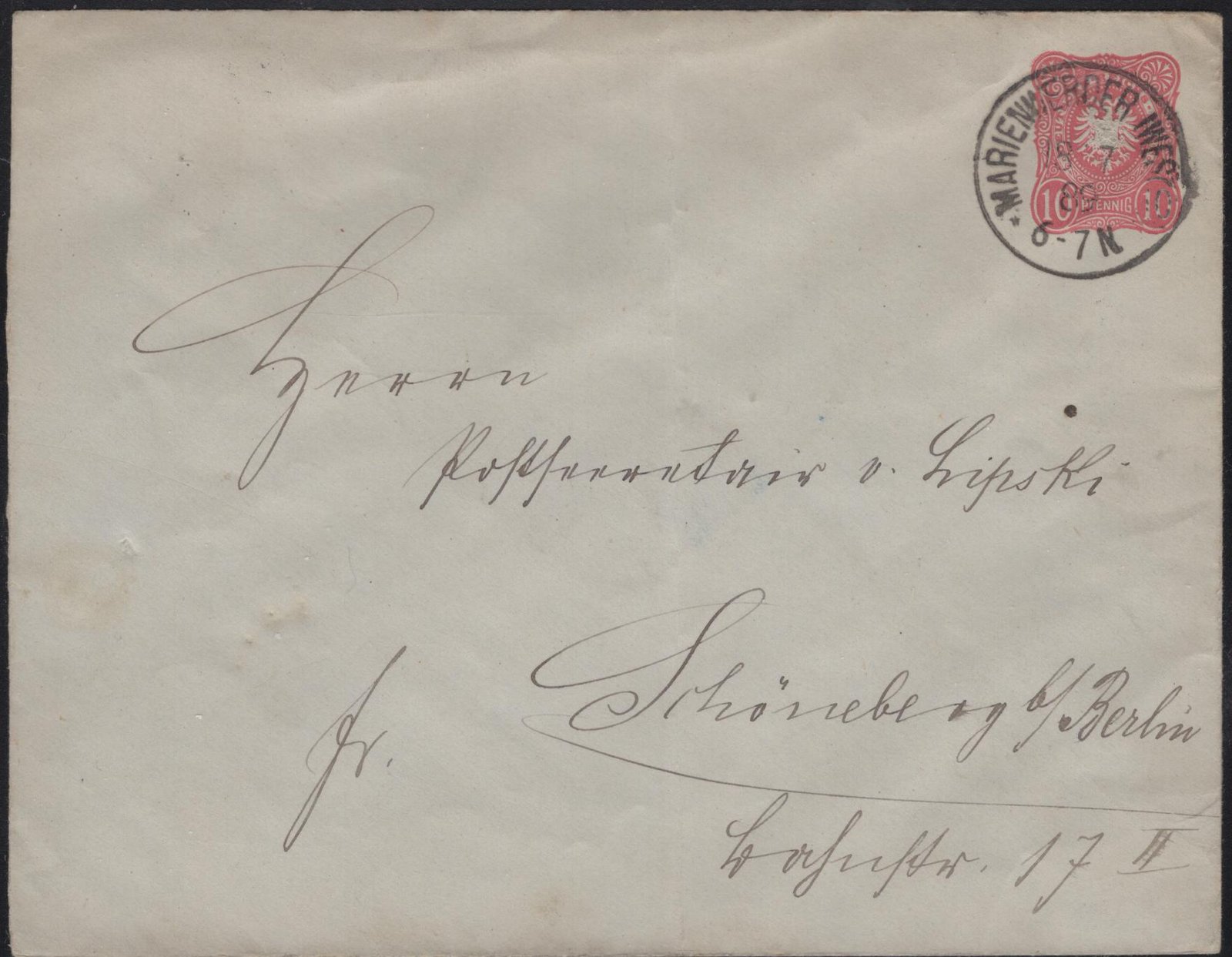 Germany Ganzsachen Michel#: U12B U Marienwerder 18 7 89 folded F/VF