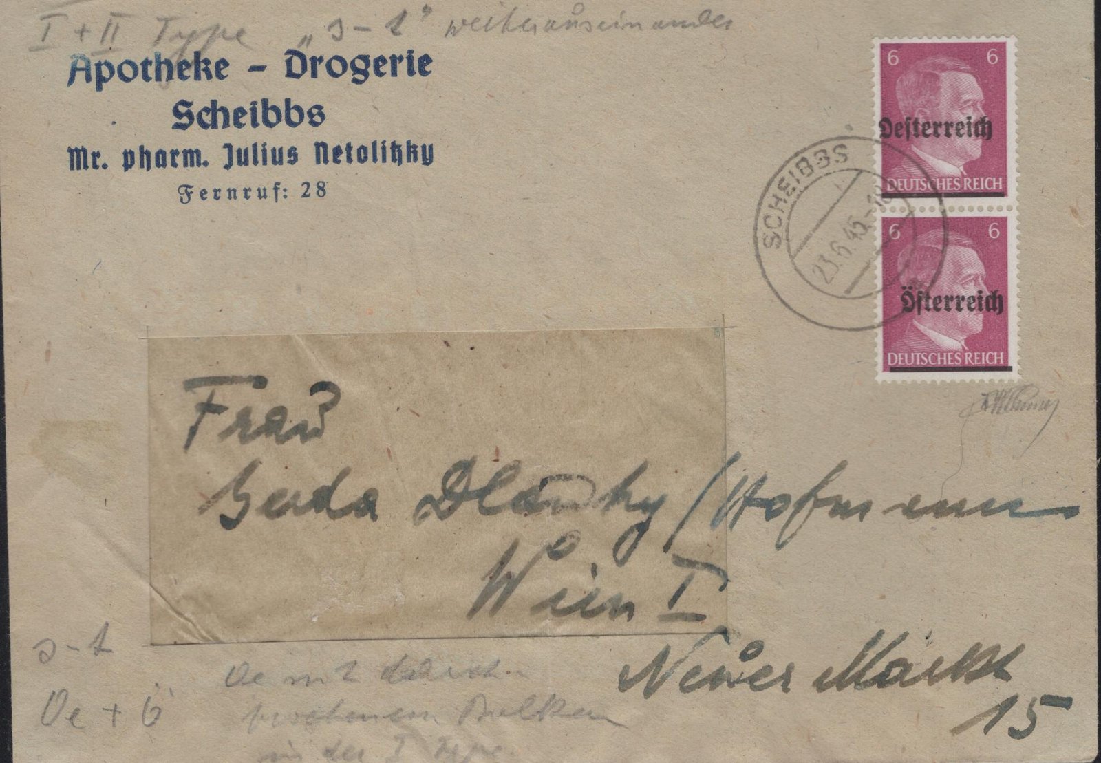 Scheibbs Soecknick 4 I & 4 II vertical pair on commercial cover 21 6 45 VF expertized