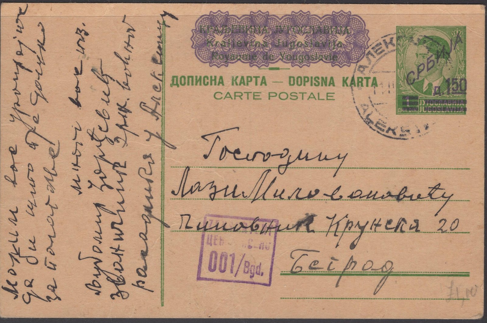 Serbia MI P3 postally used censored VF