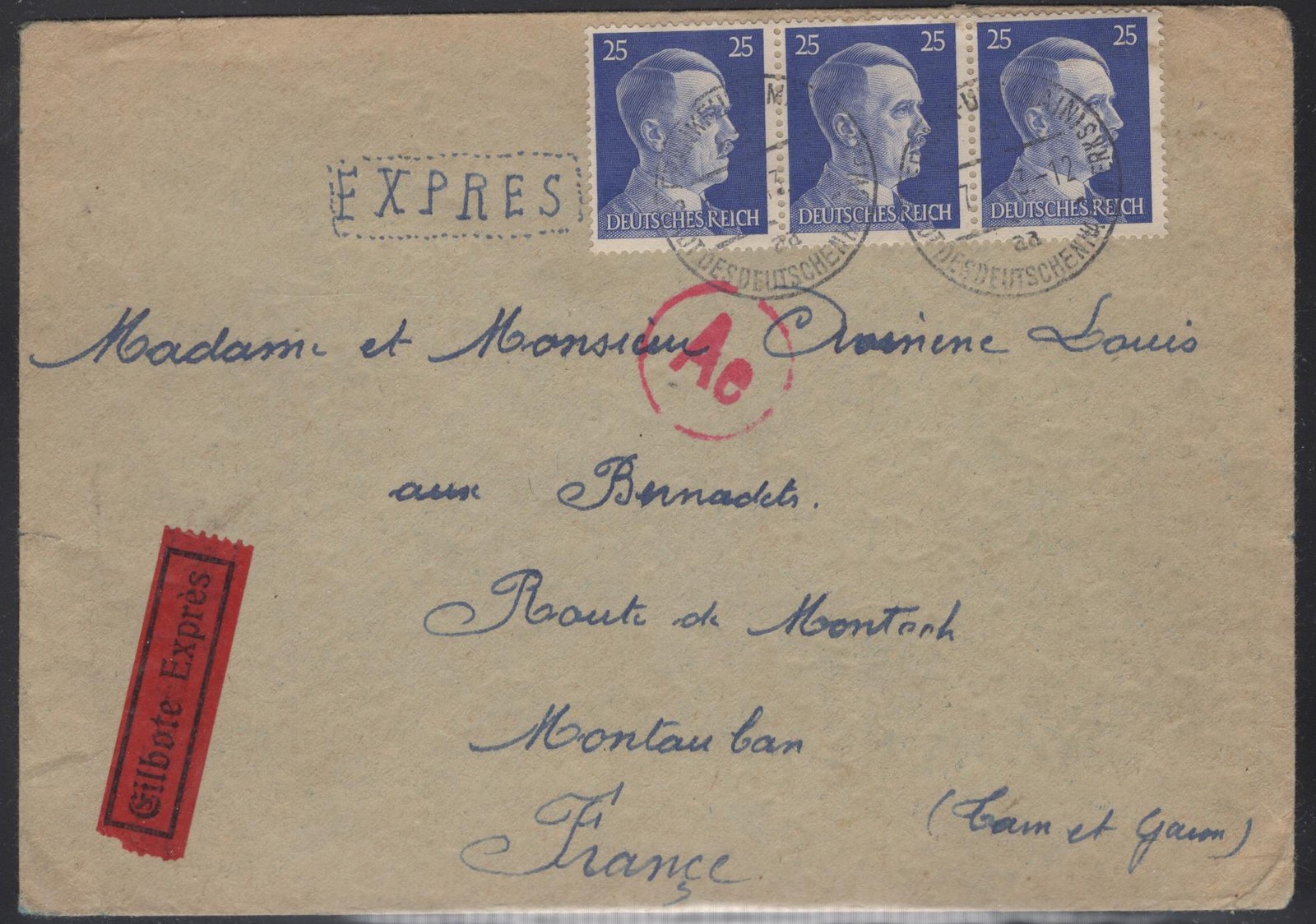 Third Reich Michel#: 793 (3) EXPRESS cover Frankfurt 2 7 43 F/VF quantity