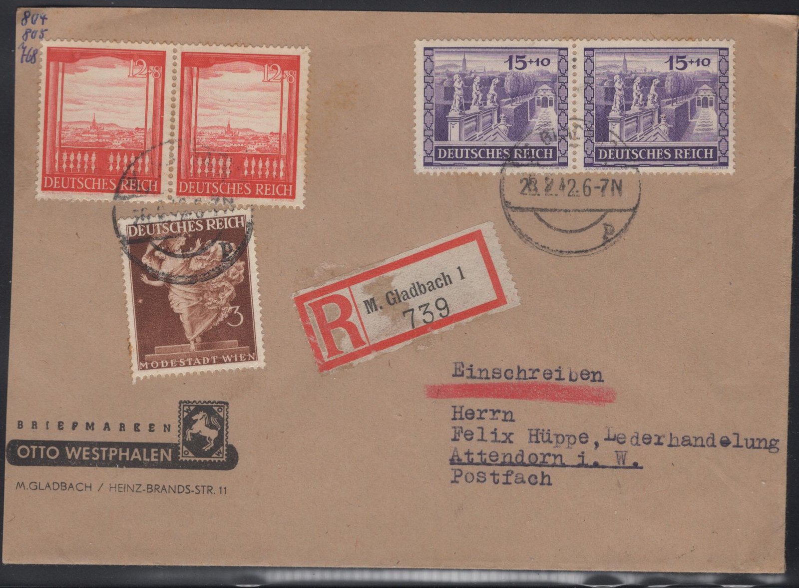 Third Reich Michel#: 804-5 Reg cover 26 2 43 F/VF quantity