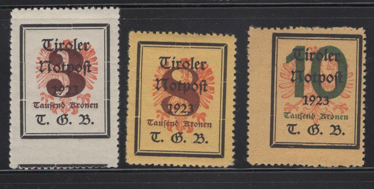 Tirol 1923 issues 3,8,10 * F/VF quantity